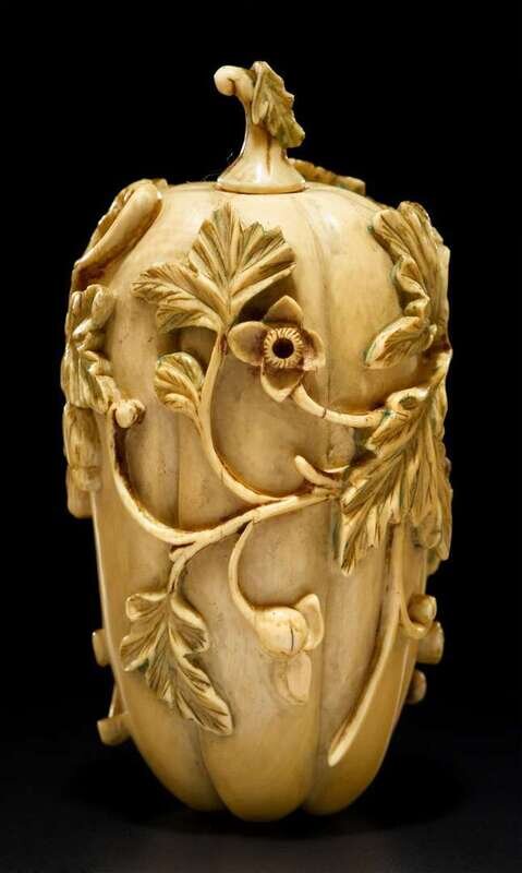 Large Chinese carved and polychromed ivory snuff bottle early 19th century