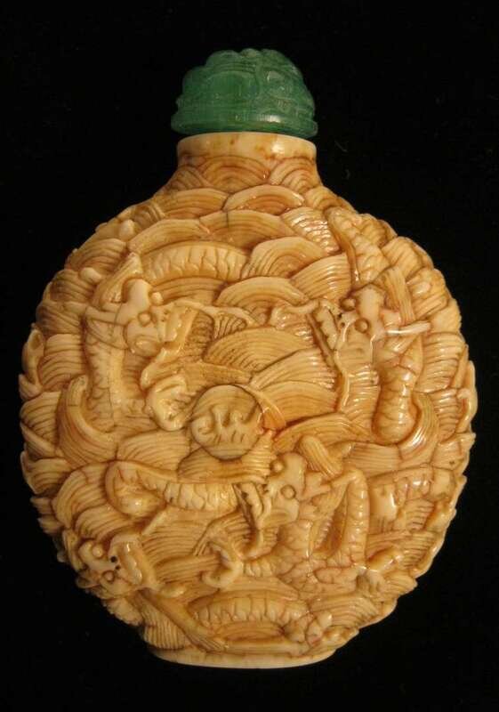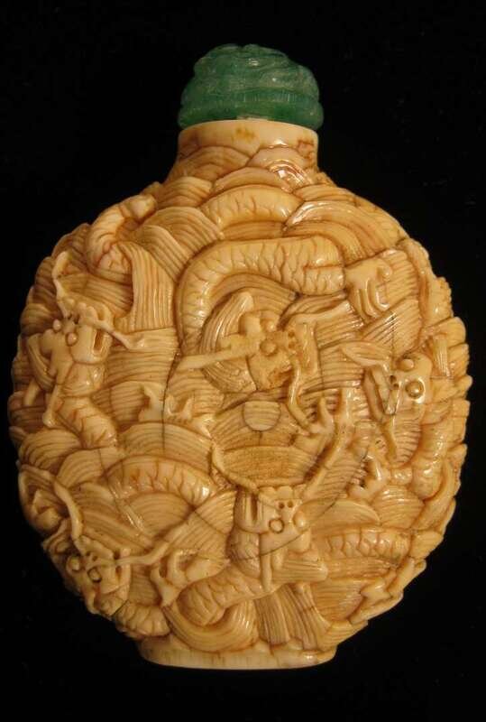 Good Chinese carved elephant ivory snuff bottle early 19th century