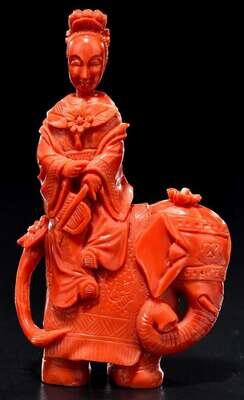 Chinese coral meiren on elephant snuff bottle