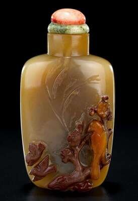 Good carved brown agate snuff bottle 19th century or later