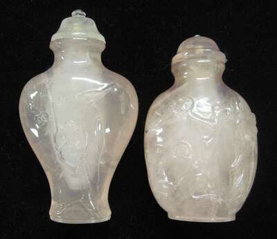 Two Chinese rose quartz snuff bottles