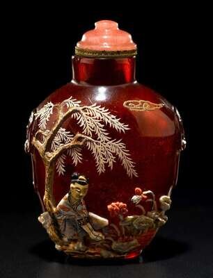 Fine Chinese carved and lacquered snuff bottle 19th century, decoration possibly japanese