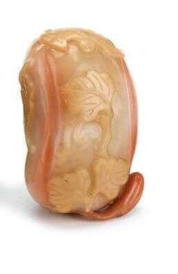 The melon-form bottle carved to surface with leafy vines and fu bats.