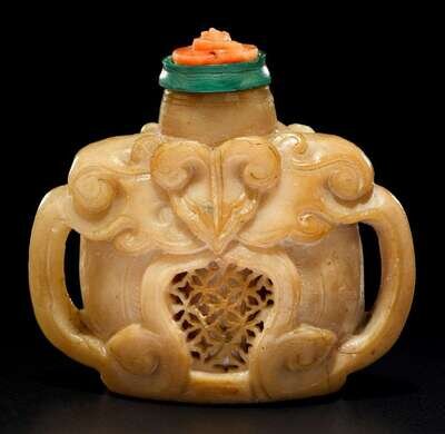 Chinese carved soapstone snuff bottle