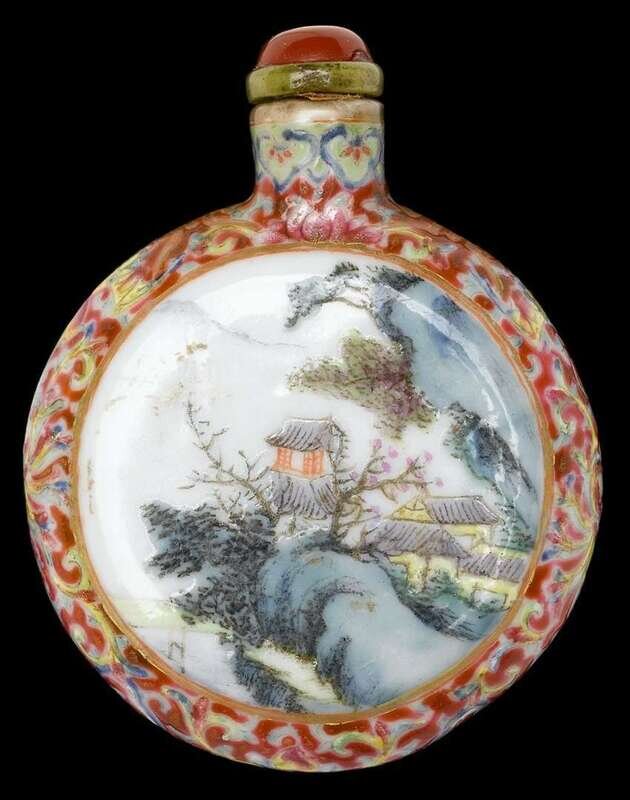 Unusual Chinese famille rose porcelain snuff bottle 18/19th century