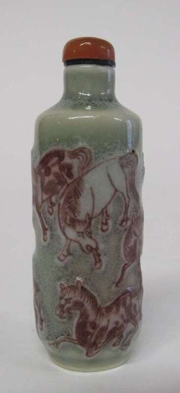 Chinese copper red underglazed celadon glazed porcelain snuff bottle 19th century