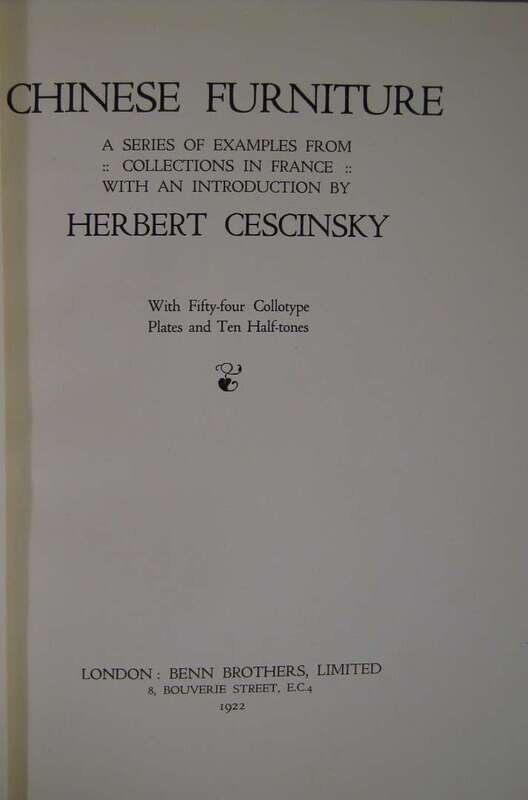 "Chinese Furniture" Benn Brothers, London, 1922