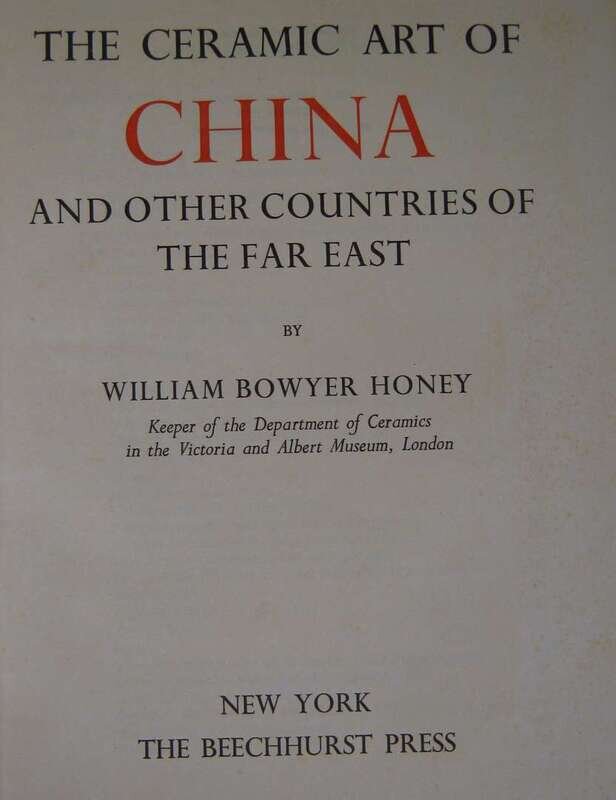 "The ceramic art of China and other countries of the far east" by W. B. Honey. The Beechhurst Press, New York, 1944