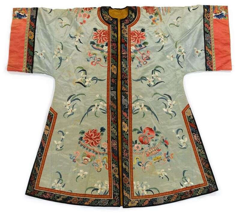 Chinese embroided brocade woman's robe qing dynasty