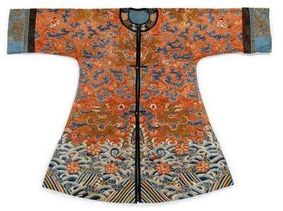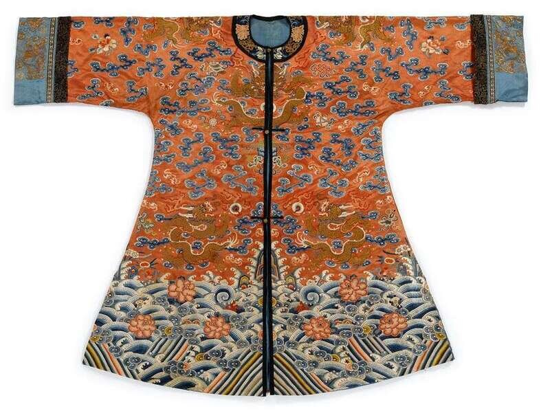 Chinese silk and gilt thread embroidered dragon robe qing dynasty