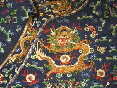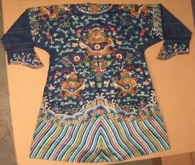 Rare Chinese embroidered blue ground child's robe qing dynasty
