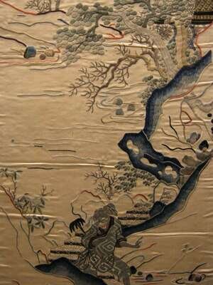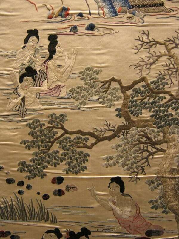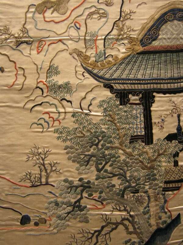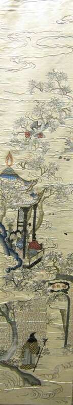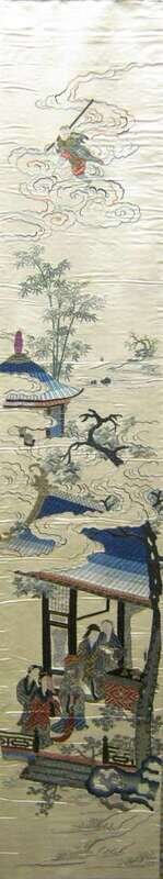 Four Chinese embroidered silk hangings late 19th century
