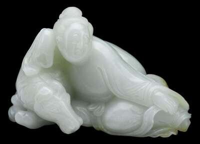 Fine Chinese white jade carving of Quanyin 18th century