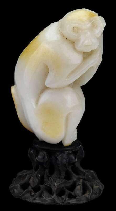 Chinese brown skinned white jade model of a monkey