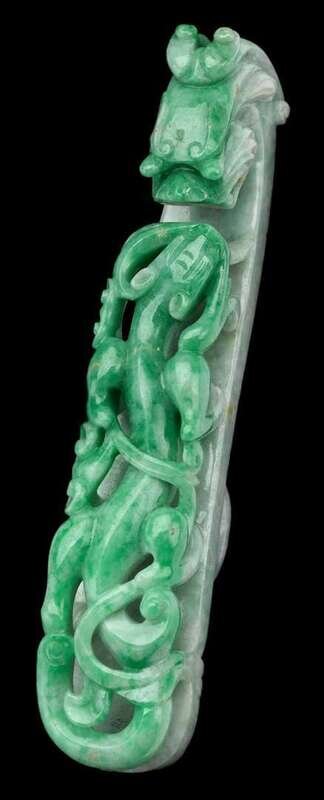 Fine Chinese apple green and light celadon jadeite buckle 18/19th century