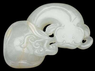 Fine white jade 'catfish and lotus' pendant 18/19th century