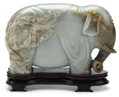 Large Chinese carved celadon jade elephant model