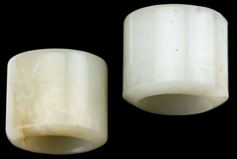 Two Chinese white jade archers' rings qing dynasty