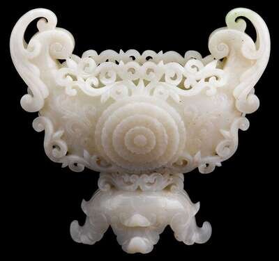 Large Chinese white jade vessel late 19th century