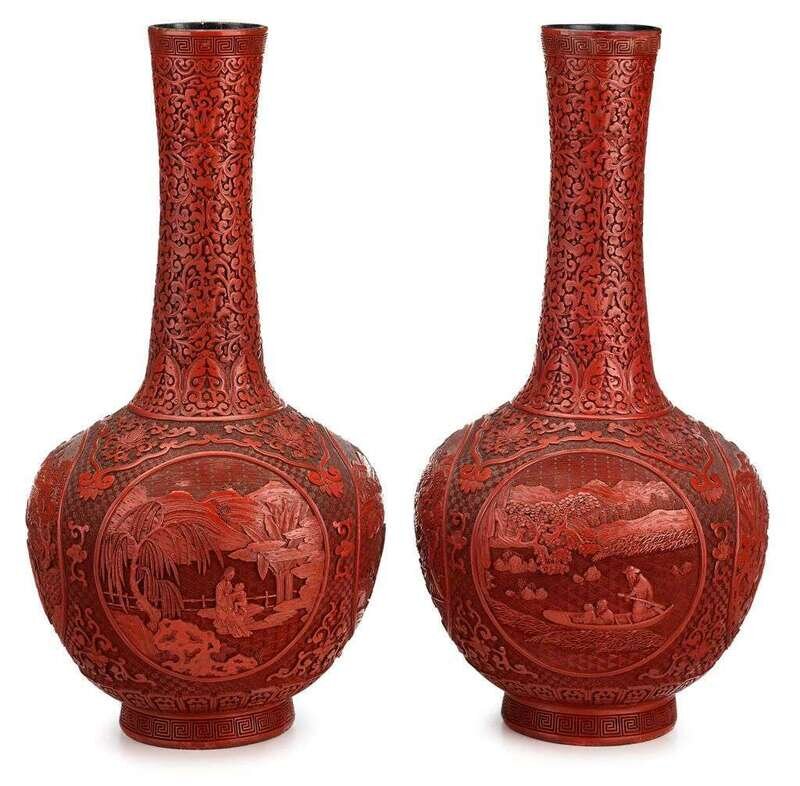 Good Pair of Chinese carved cinnabar lacquer vases 19th century