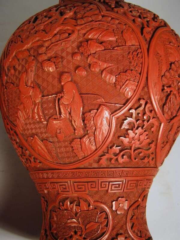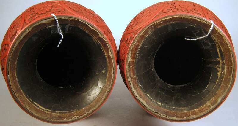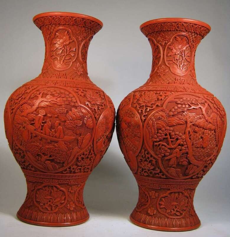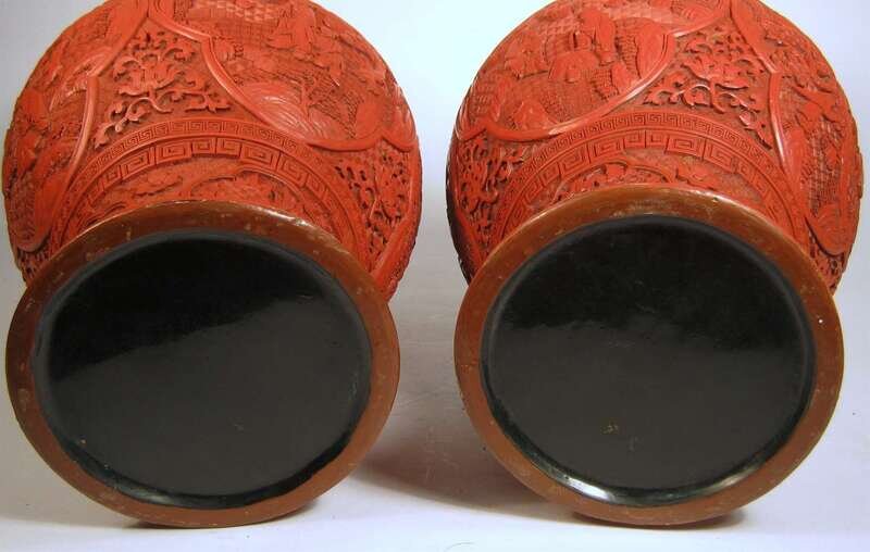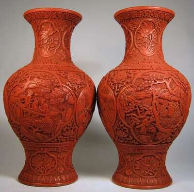 Large pair of Chinese cinnabar lacquer vases 19th century