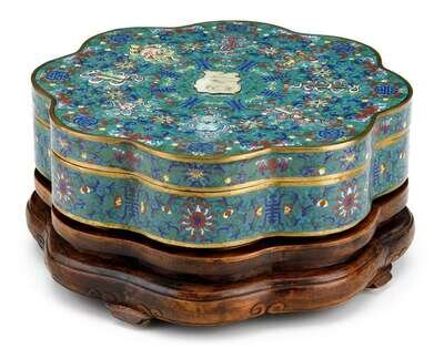 Chinese gilt metal and jade mounted closionne box early 20th century