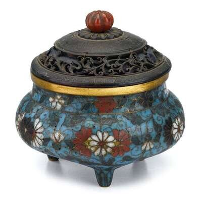 Rare Chinese Ming cloisonne censer and cover ming dynasty