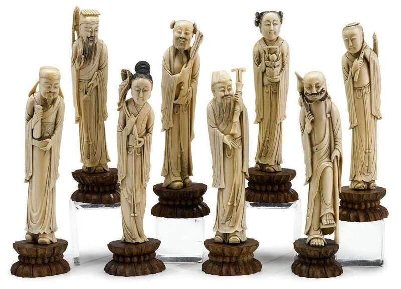 Full set of Chinese elephant ivory carvings of the eight Immortals 19th century