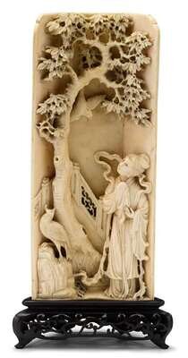 Chinese carved recessed elephant ivory plaque 20th century