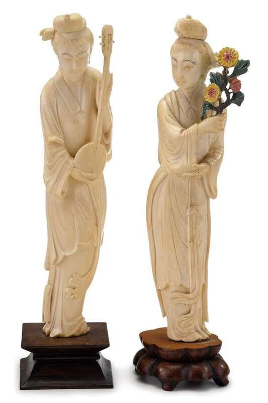 Pair of Chinese elephant ivory meiren late 19th century