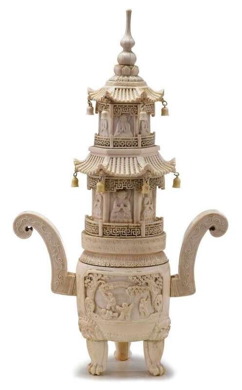 Chinese carved elephant ivory pagoda late 19th century