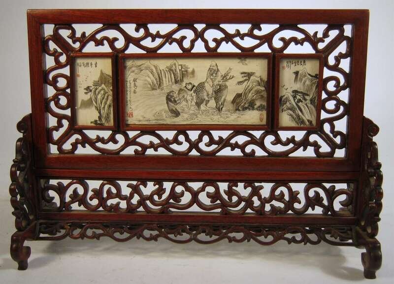 Chinese ivory and ink work miniature table screen