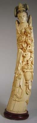 The standing meiren cuved to the form of the task holding a flower basket in her hand.