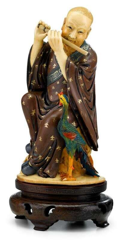 Fine Chinese polychromes carved elephant ivory Immortal figure 19th century