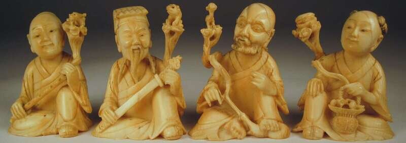 Four Chinese marine ivory immortals qing dynasty