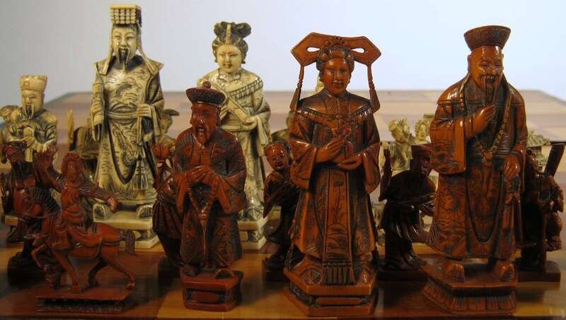 Chinese elephant ivory chess set early 20th century