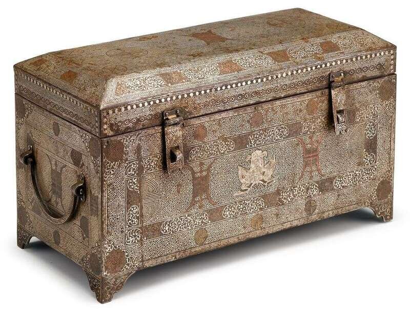 Rare Sino-Persian steel and copper on iron storage box qing dynasty