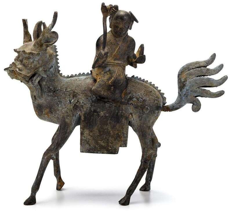 Chinese bronze 'beast and attendant' censer ming dynasty