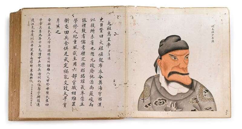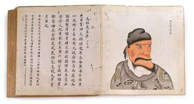 Thirty seven pages unbound numbered album; ink and color on paper; portraits and biographies of several prominent Ming figures, page no. 25 missing; Sheet H: 15 in. W: 14 1/2 in.