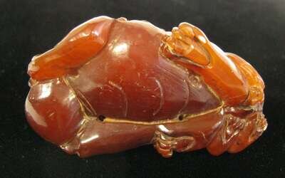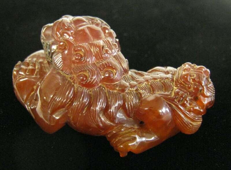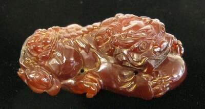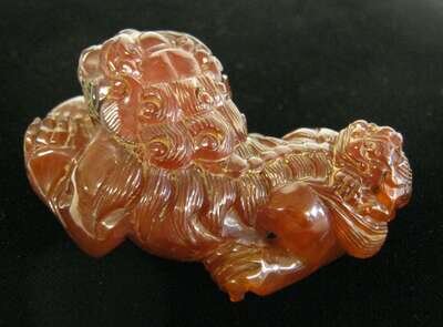 Chinese carved amber fu lion