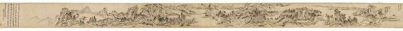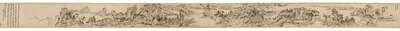 Handscroll, in and wash on paper, signed kangxi and collector seal of Yi Zhi Tang, and Lu Shou Qi, mounted in embroider silk brocade: approx 170 in.