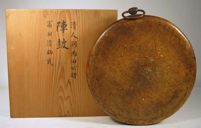Stretched circular skin over wood frame, with dedicated Japanese collectors box.