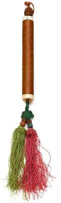 The slender and hollow toggle relief carved to exterior with romantic poem; capped at ends with elephant ivory inserts and strung.
