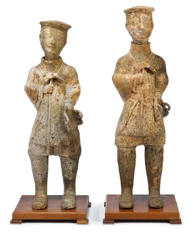 Matched pair of Chinese pottery 'Manorial soldier' figures easter han style
