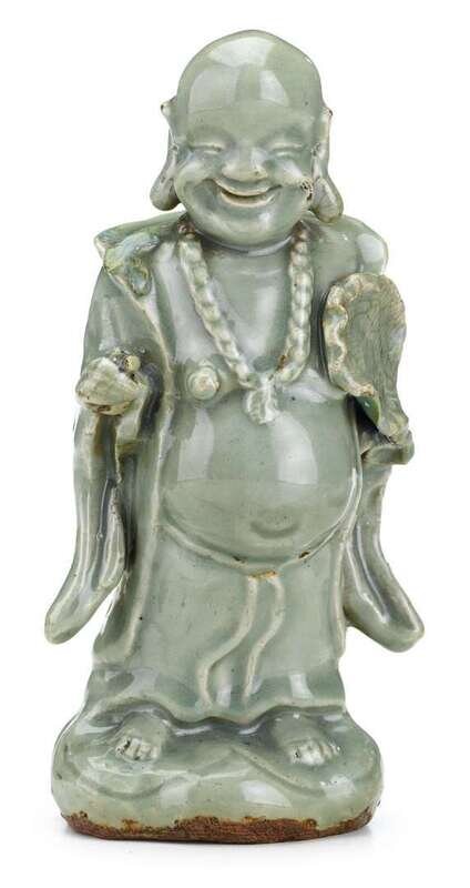 Rare Chinese celadon glazed earthenware figure of Budai ming dynasty
