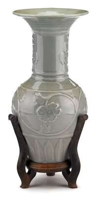 Fine Chinese molded celadon porcelain vase ming dynasty