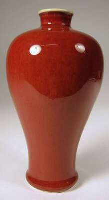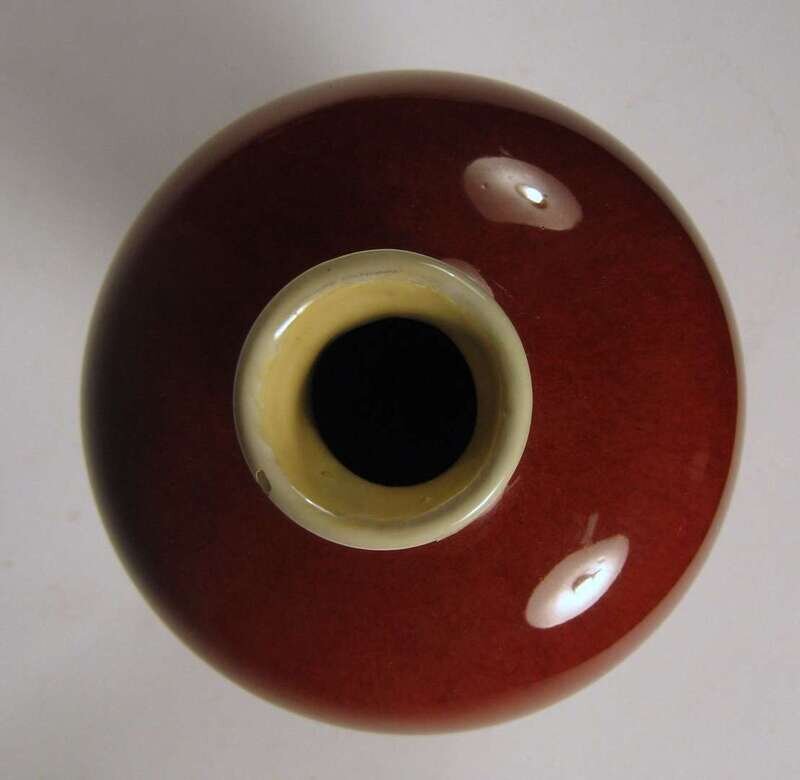 Meiping form, with flambe red glaze to white glazed base, unglazed foot rim, repair to rim.