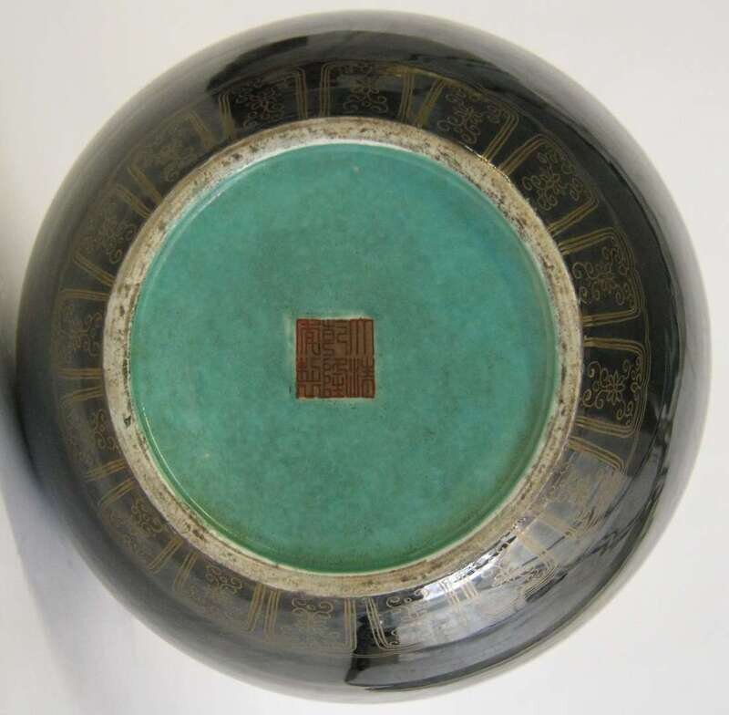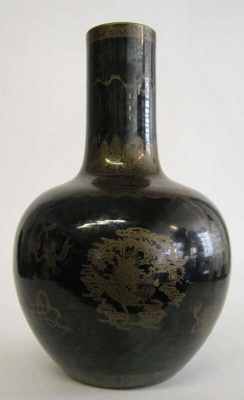 Chinese Qianlong-style black and gold vase qianlong mark