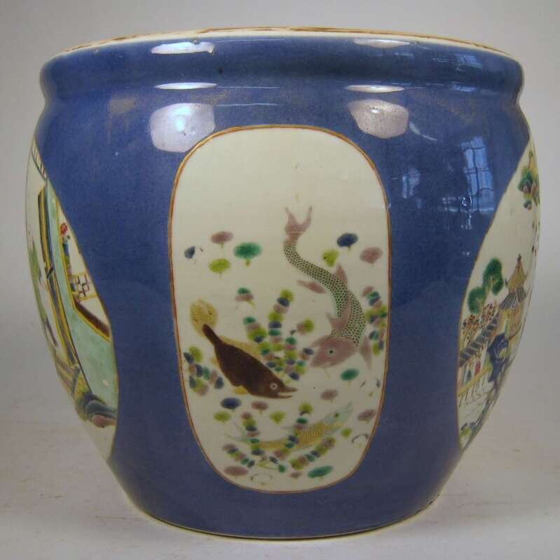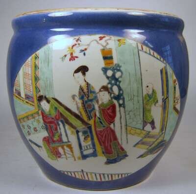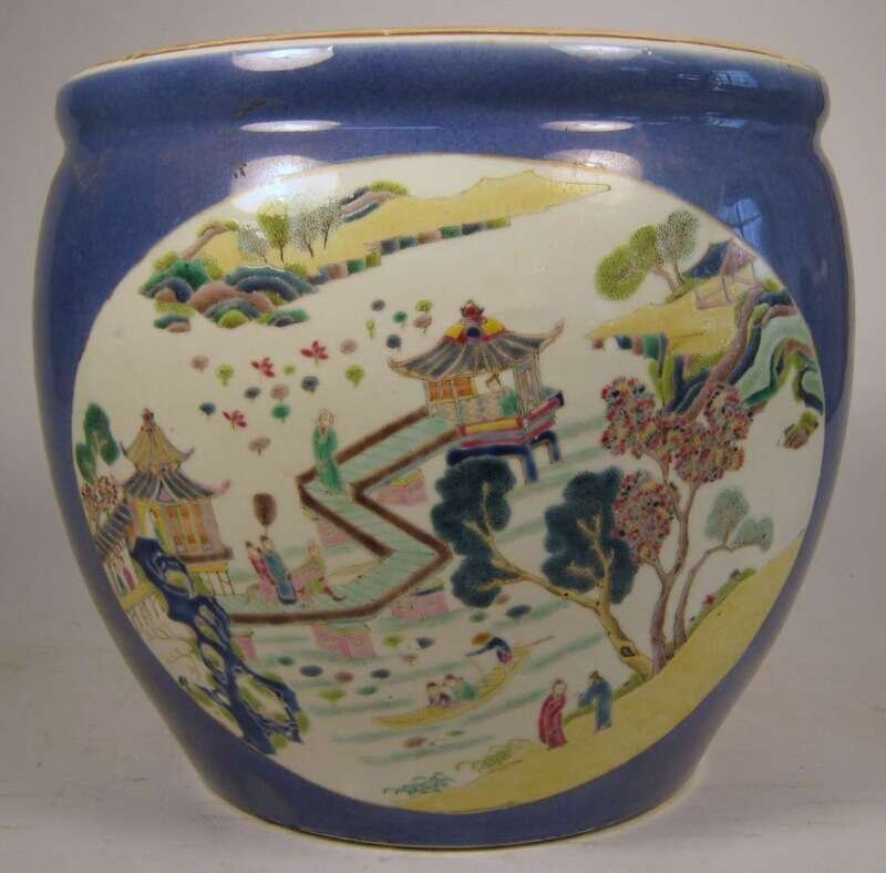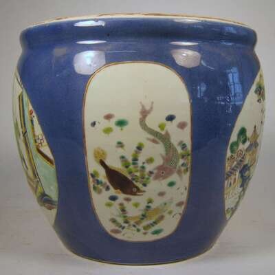 Chinese enameled blue ground porcelain jardiniere qing dynasty