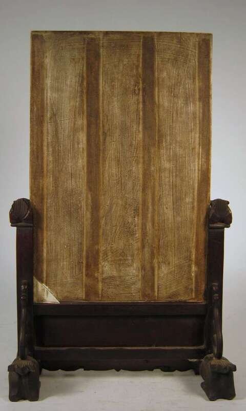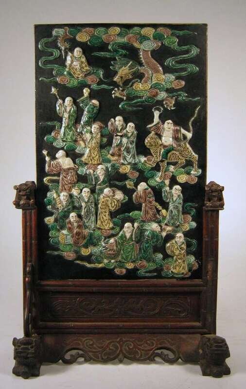 Chinese famille noire porcelain and hardwood table screen 19th century